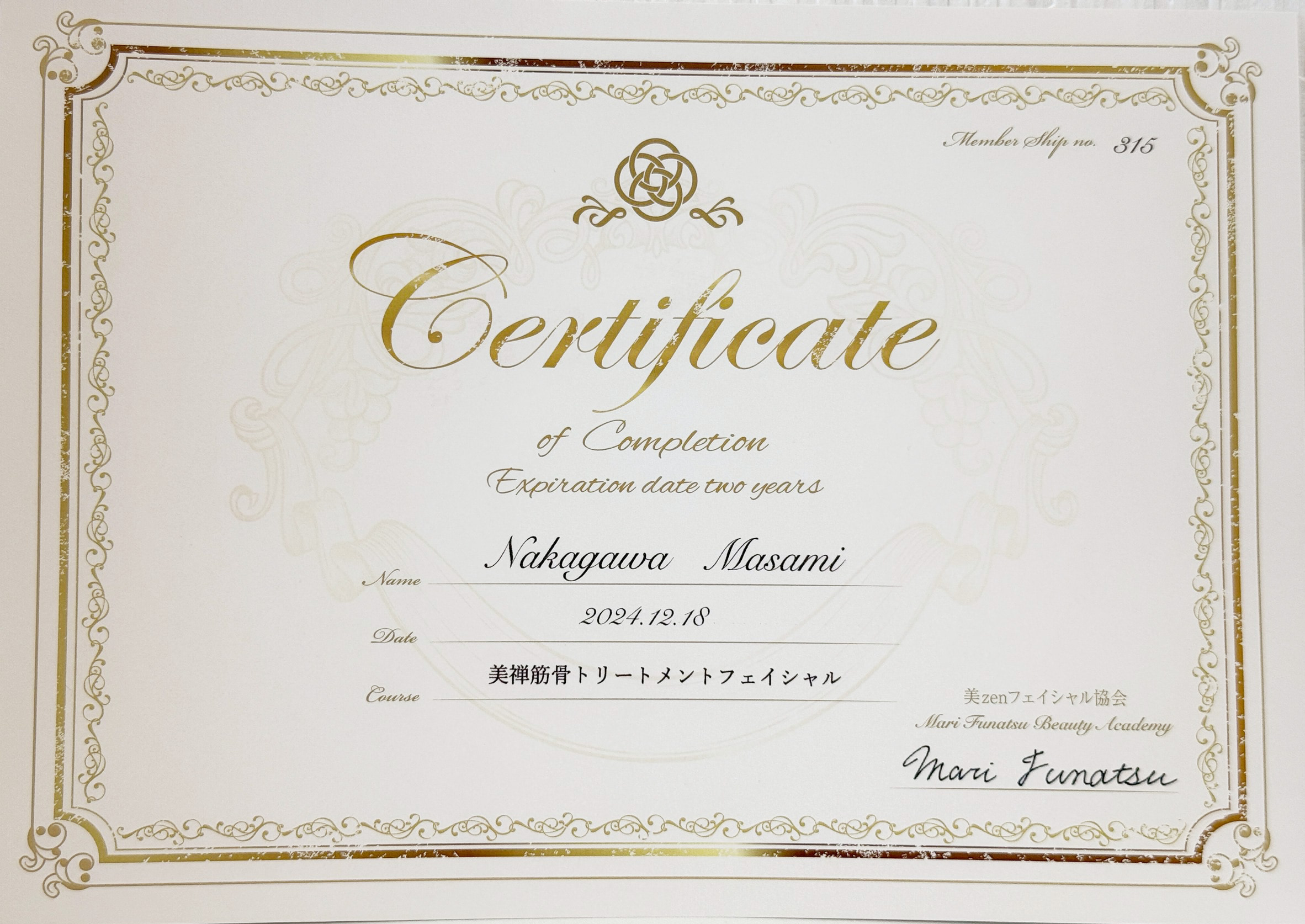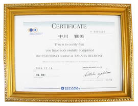 タカラベルモント フェイシャル修了証