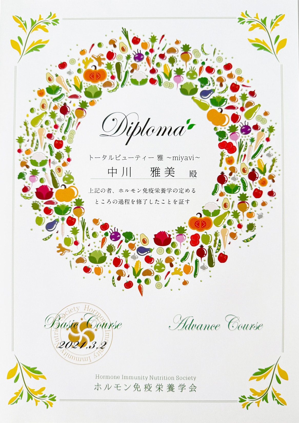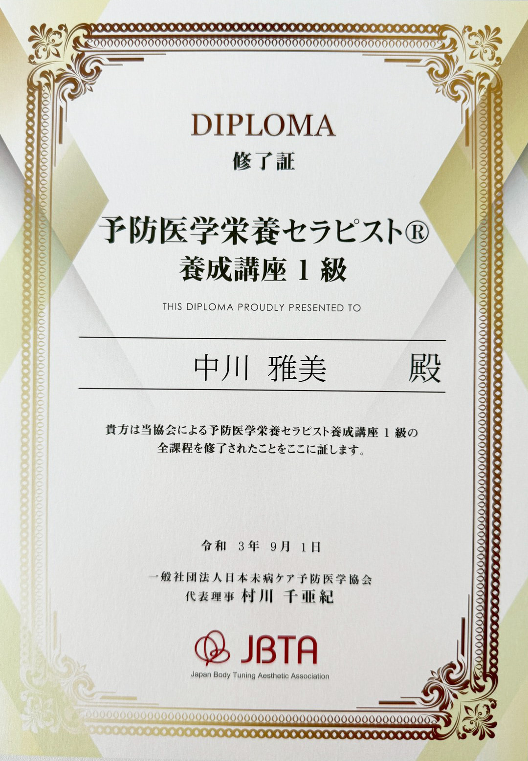 2019年10月:一般社団法人 日本未病ケア予防医学協会 技術認定講師取得